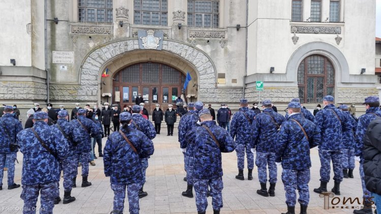 În Piaţa Ovidiu, câteva zeci de oameni au asistat la ceremonia organizată de autorităţile locale pentru a celebra 163 de ani de la înfăptuirea Unirii Principatelor Române. Militari din structurile Forţelor Navale şi Terestre care au îndurat gerul de afară, au intonat imnul naţional şi au defilat în faţa oficialităţilor locale. Muzica a fost asigurată de orchestra Armatei condusă de căpitan Cornel Ignat, şeful muzicii Academiei Navale "Mircea cel Bătrân".